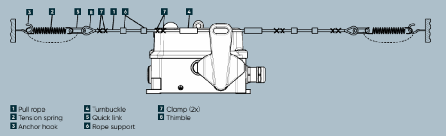 Note: These pull-rope emergency stop switches may only be used in accordance with their labelling