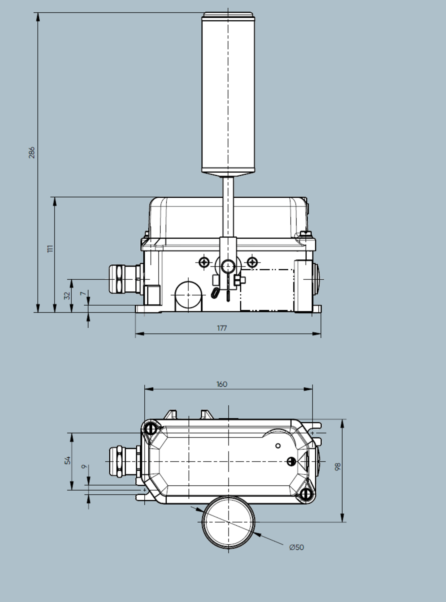 Cable entry (included in scope of delivery) | 2x M25x1,5 with red transport lock 1x screwed cable gland: sealing area ∅ 11 mm to ∅ 16 mm; 1x dummy screw |