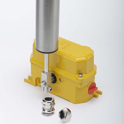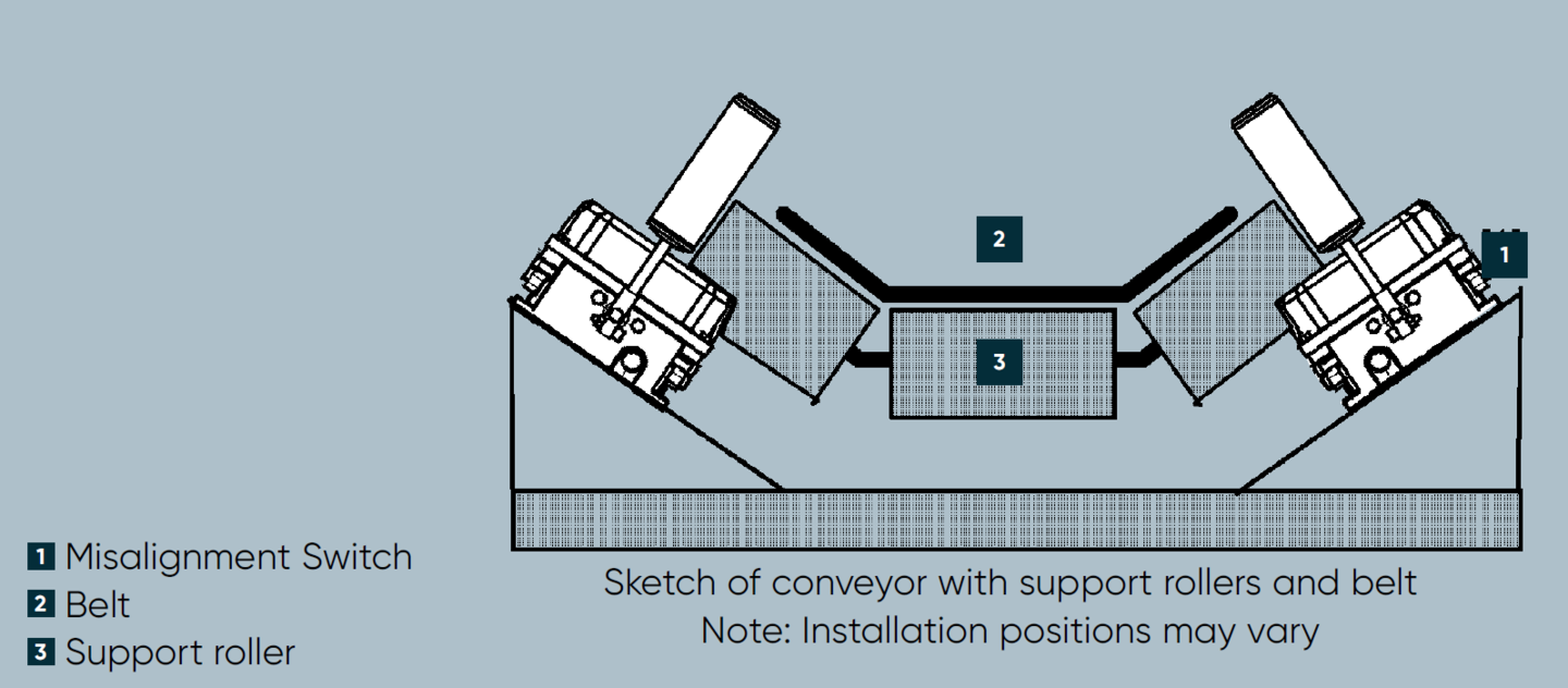 Kiepe belt misalignment switches type HES are used to monitor the misalignment of conveyor belt systems in accordance with the requirements of EN 620. They are used to protect the system from damage or destruction in the event of belt misalignment and are installed in pairs on both sides of the upper or lower run in areas at risk. The ball-bearing actuating roller made of alloy steel and with a large roller diameter is resistant to wear that occurs when the moving belt touches the roller. The Kiepe belt misalignment switch type HES conforms to the Low Voltage Directive 2014/35/EU and is UKCA compliant. It has a robust aluminum housing and can be equipped with up to 4 positively actuated changeover contacts with snap-action function. It has two adjustable switching points.