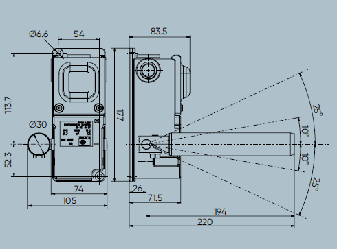 Cable entry | 3 x M25 x 1,5 (1x screwed cable gland: sealing area Ø 9 mm to Ø17 mm; 2x dummy screw) |