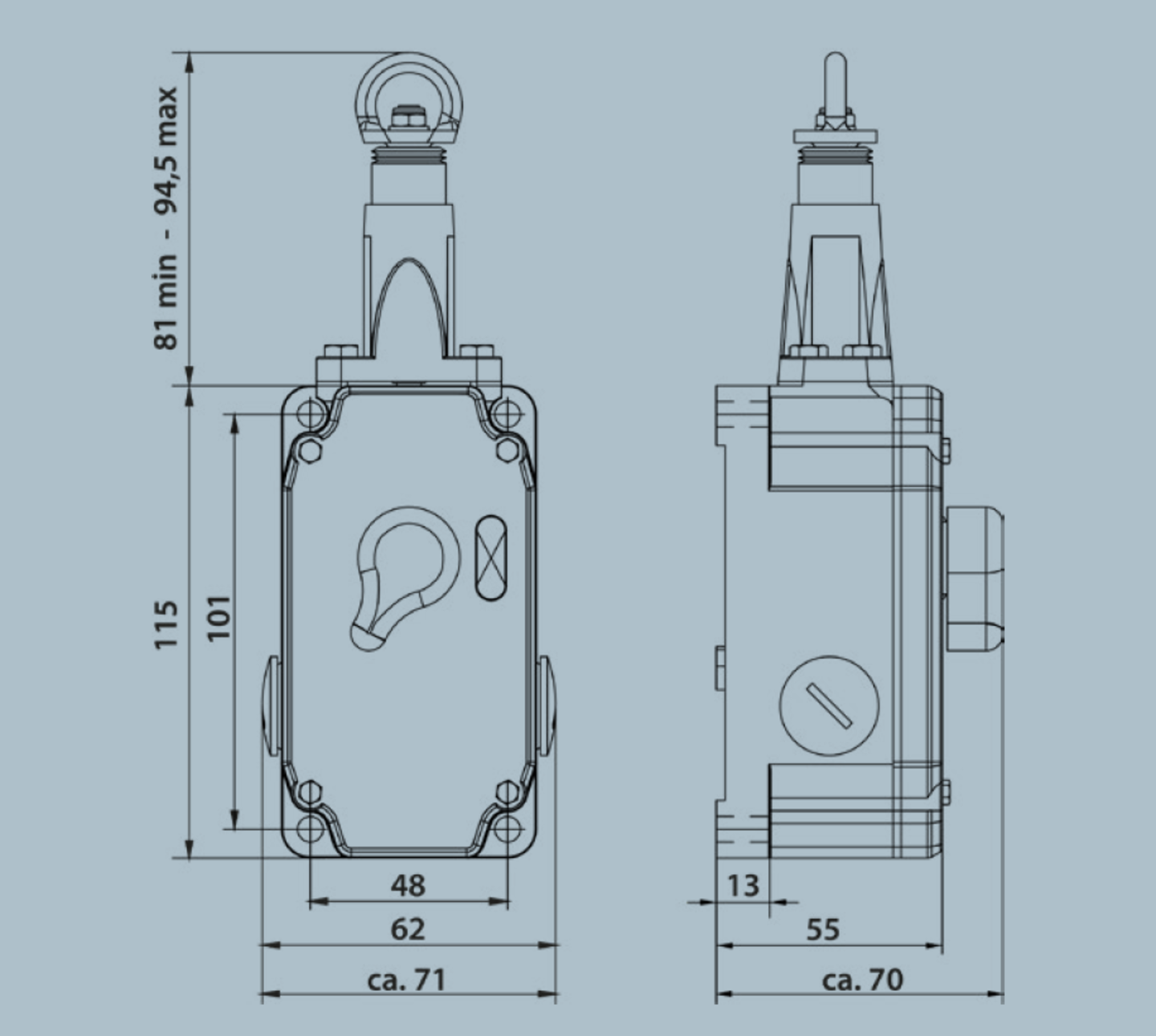 Name | Ordering No. | Weight | Emergency Stop | Adjustment Indicator | Contacts NC NO SPDT |