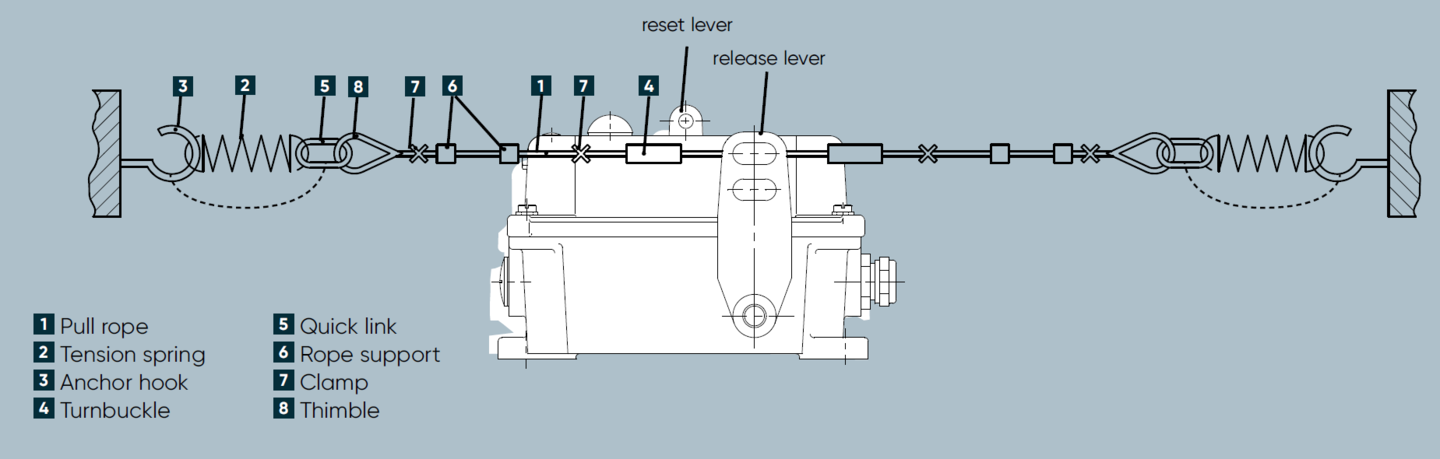 Pull-rope length (approved, max.) | 2 x 125 m (dependent from design of external tension springs and max. temperature change) |
