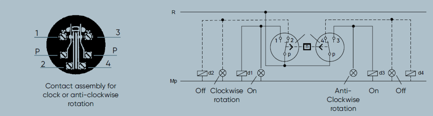 Kiepe SWB standstill monitors are electromechanical devices that do not require a power supply. The drive shaft [1] drives the hermetically sealed fluid coupling [4] [5] via the magnetic coupling [2] [3] . This actuates the respective contact spring set [6] for clockwise or anticlockwise rotation. As the drive speed increases, so does the torque generated in the fluid coupling. If the torque is greater than the counteracting preload force of the factory-set contact springs, the contact is switched over. A further increase in the drive speed increases the contact pressure only slightly, as the torque of the fluid coupling is stabilized by the slip of the magnetic coupling. If the speed drops, the contact switches back when the preload of the contact springs becomes greater than the torque generated by the drive speed. The switching point setting of the standstill monitor is determined by the viscosity of the oil in the fluid coupling and by the pretension of the contact spring sets. The set switching speeds have a tolerance of +/- 30% depending on the ambient temperature and the operating temperature. Contact is made gradually. The operating speed must therefore be higher than the switching speed to ensure contact reliability. Due to their design, standstill monitors with very low switching points have an advantageous switching delay of approx. 2 seconds. The standstill monitors are single-mechanical devices. They must be protected by suitable design measures. If speeds greater than 500 rpm are to be monitored, the use of our electronic speed monitors is recommended.