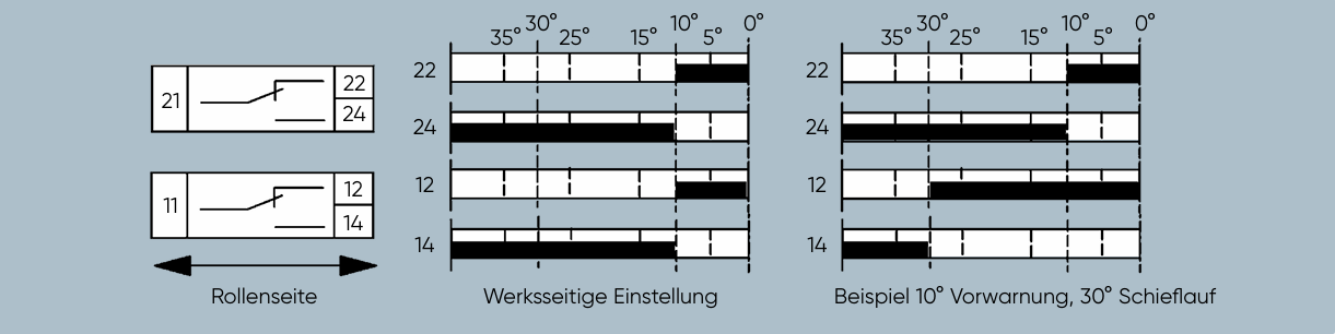 Schaltbereich | 2x 12,5°, einstellbar +/-10° 2x 18°, fix |