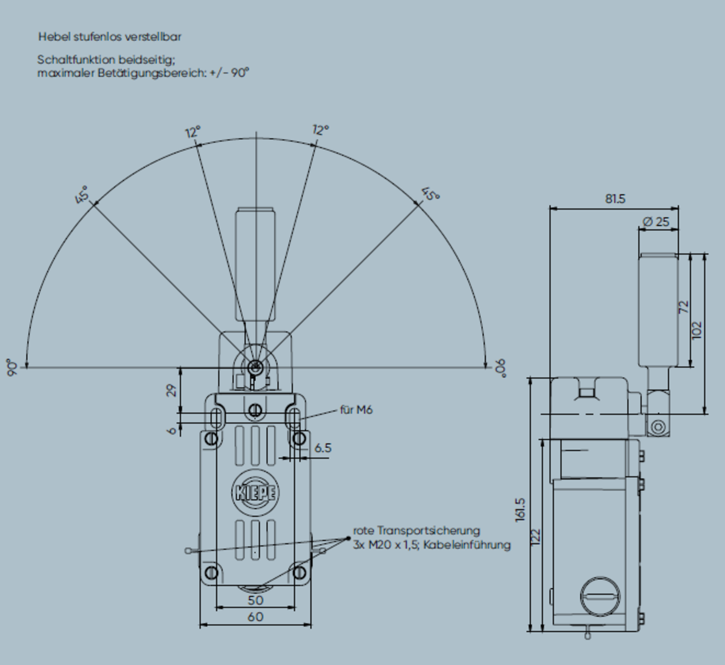 Betätigungsart | Bidirektional (zweiseitig wirkend) über Rollenhebel |