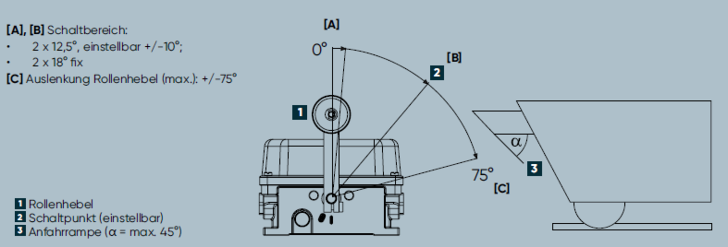 Betätigungsart | Bidirektional (zweiseitig wirkend) über Rollenhebel |