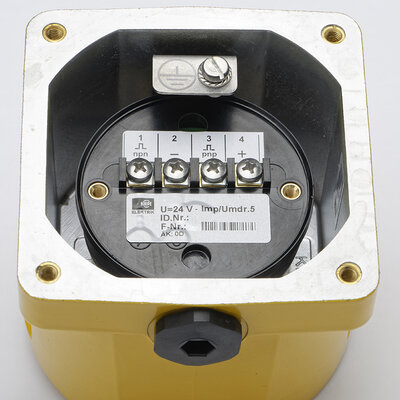 Die Spannungversorgung des opto-elektronischen EOG erfolgt durch den externen Drehzahlwächter. Dieser Geber erzeugt Spannungsimpulse mit extrem steilen Ein- bzw. Ausschaltflanken. Durch die hohe Maßgenauigkeit der eingebauten Impulsscheiben ist der exakte Impulsabstand auch bei einer Impulsgabe von 25 Imp./U gewährleistet. Durch die Impulsvervielfältigung von max. 25 Imp./U sind diese Geber in Verbindung mit einem Kiepe-Drehzahlwächter zur Stillstandskontrolle von Antrieben geeignet. Varianten des Typ EOG sind mit 1, 5, 10 oder 25 Imp./U verfügbar.