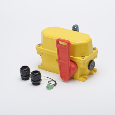 Farbe | Gehäuse gelb (RAL 1004), Auslöshebel rot (RAL 3000), Rückstellhebel blau (RAL 5010) |