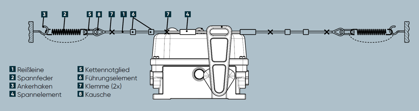 Installationslänge der Reißleine (max.) | 2 x 125m (abhängig von der Auslegung der externen Zugfedern und der max. Temperaturschwankung) |