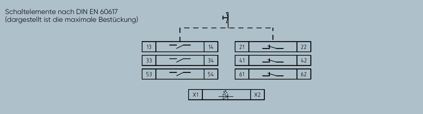 Schaltsystem | bis zu 3 Schließer- und 3 Öffnerkontakte; zwangsöffnend (gemäß EN 60947-5-1) |